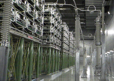 To solve the challenge of transmitting electricity from remote locations, high voltage direct current (HVDC) technology is ideal because it’s better at transmitting large volumes of electricity across distances than the more common alternating current (AC). Toshiba’s HVDC power transmission project in Hokkaido, Japan, includes a 122-km hybrid DC transmission line with converter stations at each end, linking Hokkaido with Honshu, Japan’s main island to the south. Using a voltage-sourced-converter, the station can transmit power from Honshu even if there is an outage in Hokkaido.